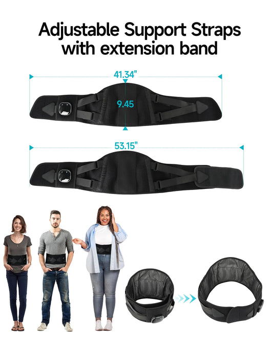 Cordless Heating Pad, 53'' Lower Back Brace Massager with Heat - Rechargeable Heating Belt, 3 Heating Levels & 5 Massage Mode, Gifts (Black)